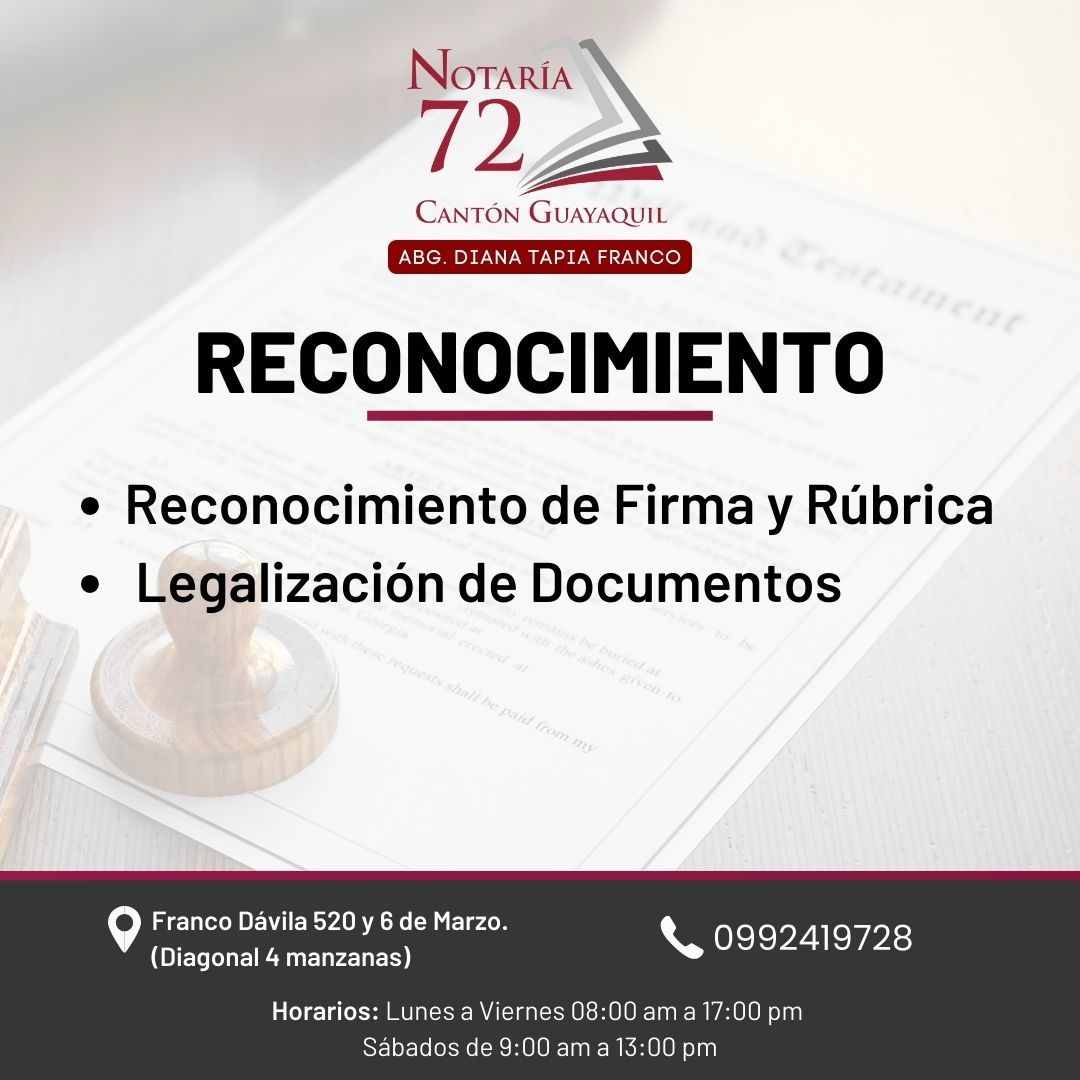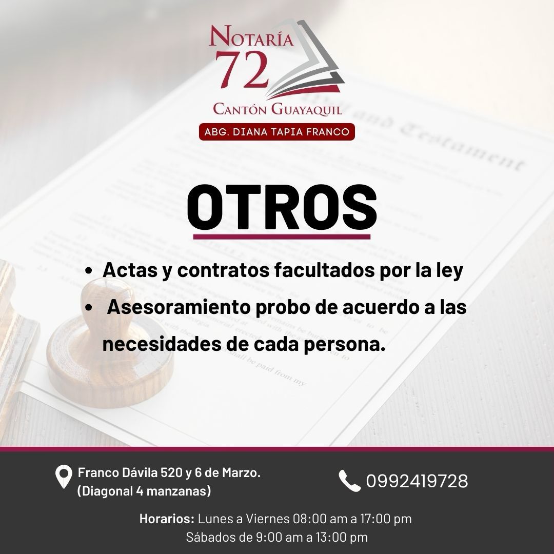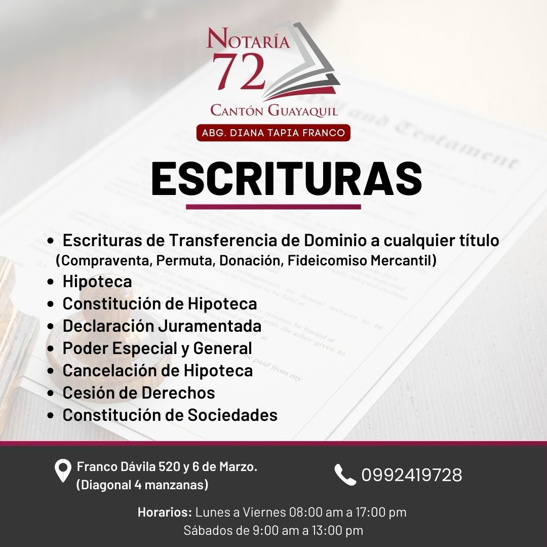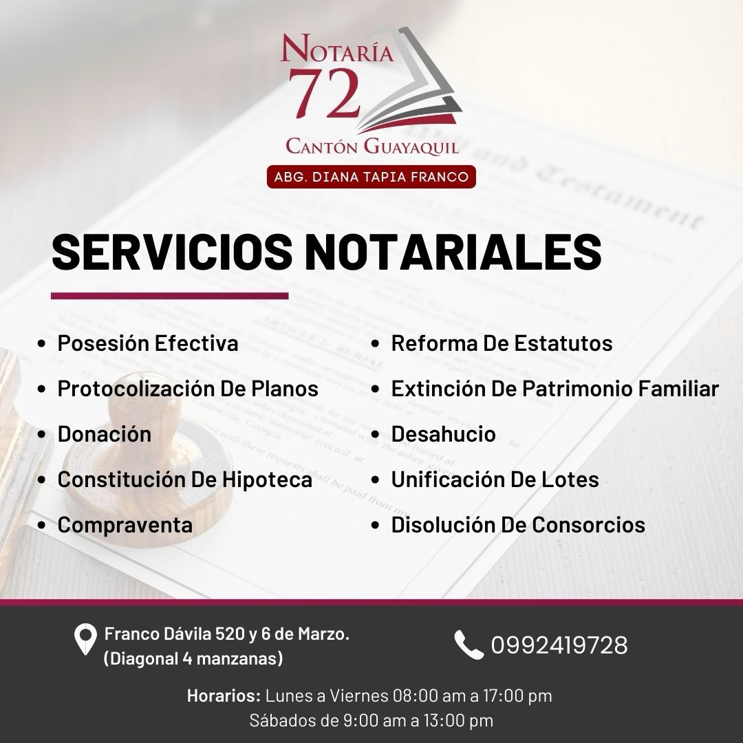 NOTARÍA 72 DEL CANTÓN GUAYAQUIL/ ABG. DIANA TAPIA FRANCO